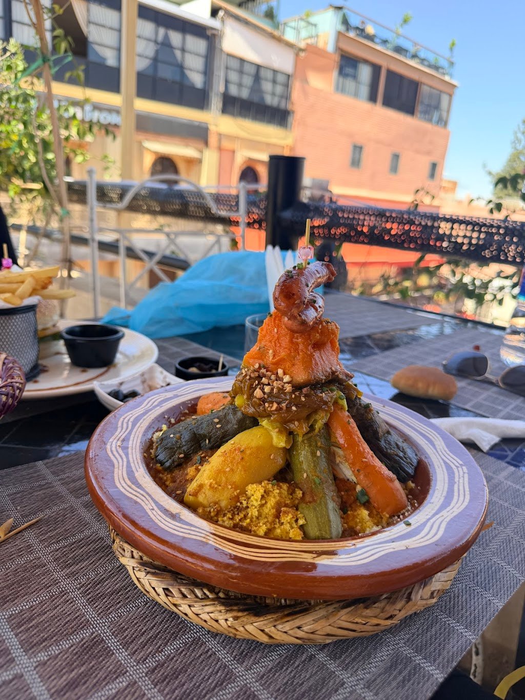 Dans l’assiette, tout est soigné : salades fraîches, jus de fruits, et une pastilla qui marque les esprits. Un restaurant rooftop vraiment beau, parfait en famille comme pour une pause gourmande entre deux visites.