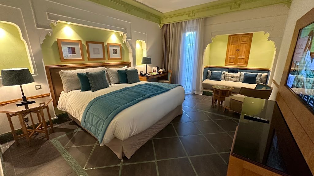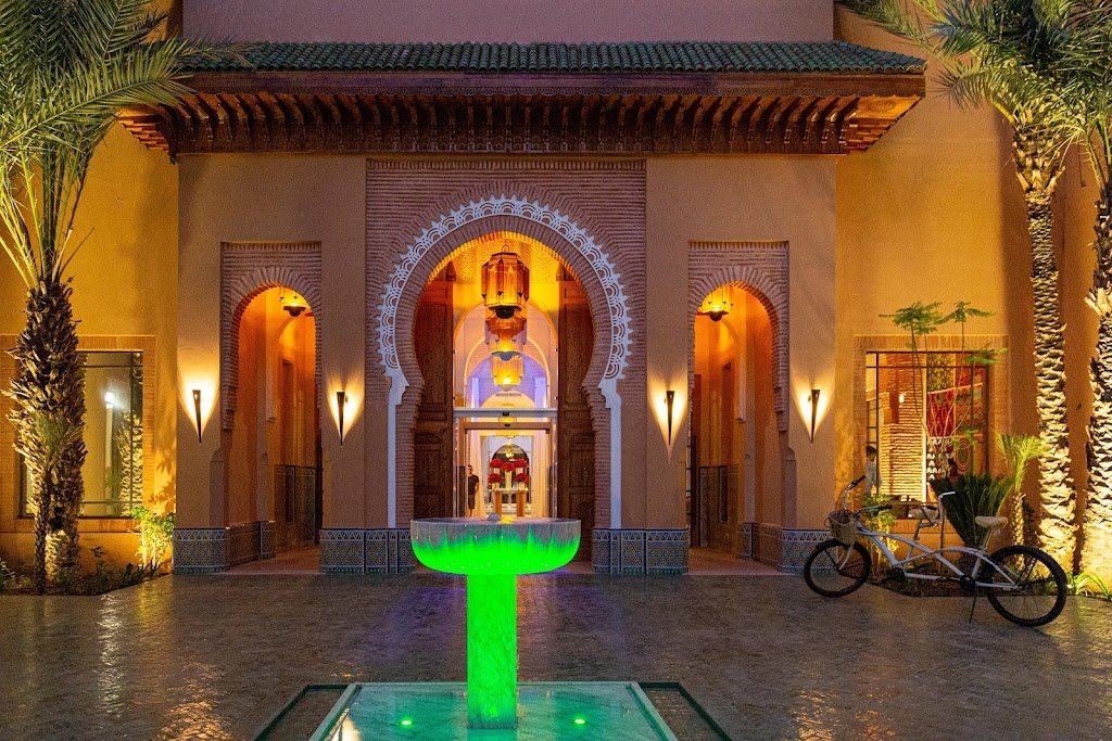 Jaal Riad Resort Adults Only offre une parenthèse dépaysante à Marrakech, sur le Bd Mohamed VI, avec une architecture spectaculaire et une atmosphère reposante. Dès l’entrée, le décor de palais et les senteurs orientales donnent le ton, tandis que le jardin intérieur et la grande piscine invitent à ralentir.