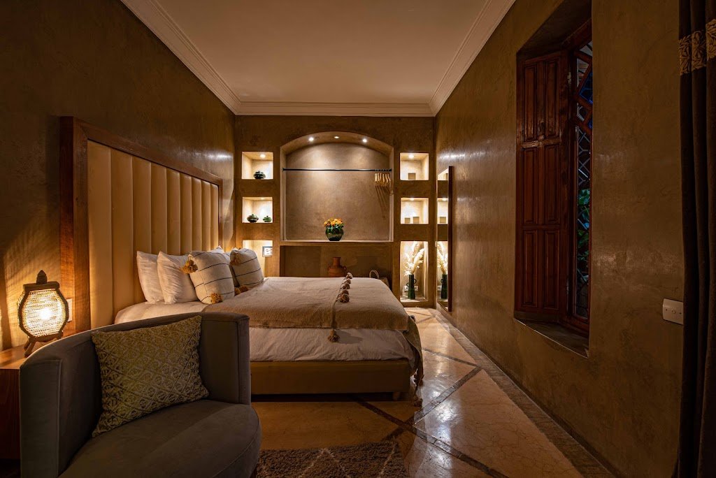 Riad Livia Marrakech est une valeur sûre pour découvrir Marrakech à pied, tout en retrouvant un vrai cocon en fin de journée. Installé près des souks et à environ 10–15 minutes de Jemaa el-Fna, le riad reste étonnamment calme, dans une petite ruelle non passante.