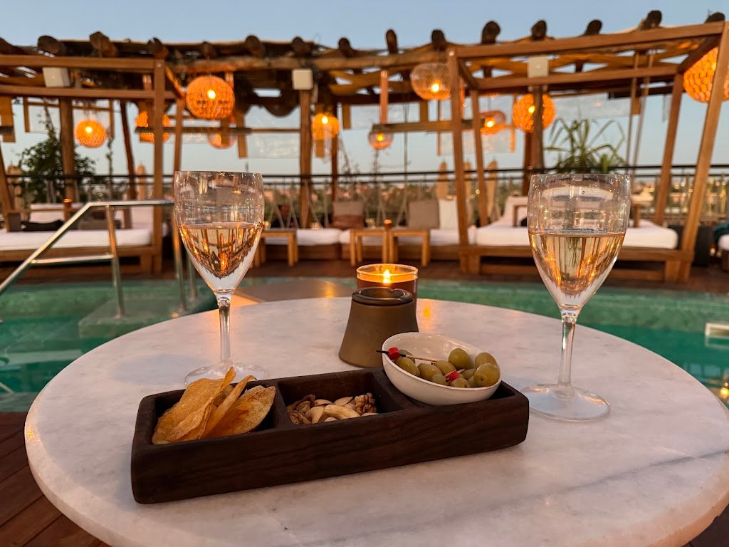 À l’angle de l’Avenue Echouhada et de la Rue du Temple, Rooftop Garden s’impose comme une adresse incontournable pour un dîner qui en met plein les yeux. On vient pour la vue panoramique (surtout au coucher de soleil), et on reste pour des assiettes soignées : poulpe bien assaisonné, et un vacherin particulièrement réussi, frais et parfaitement équilibré.