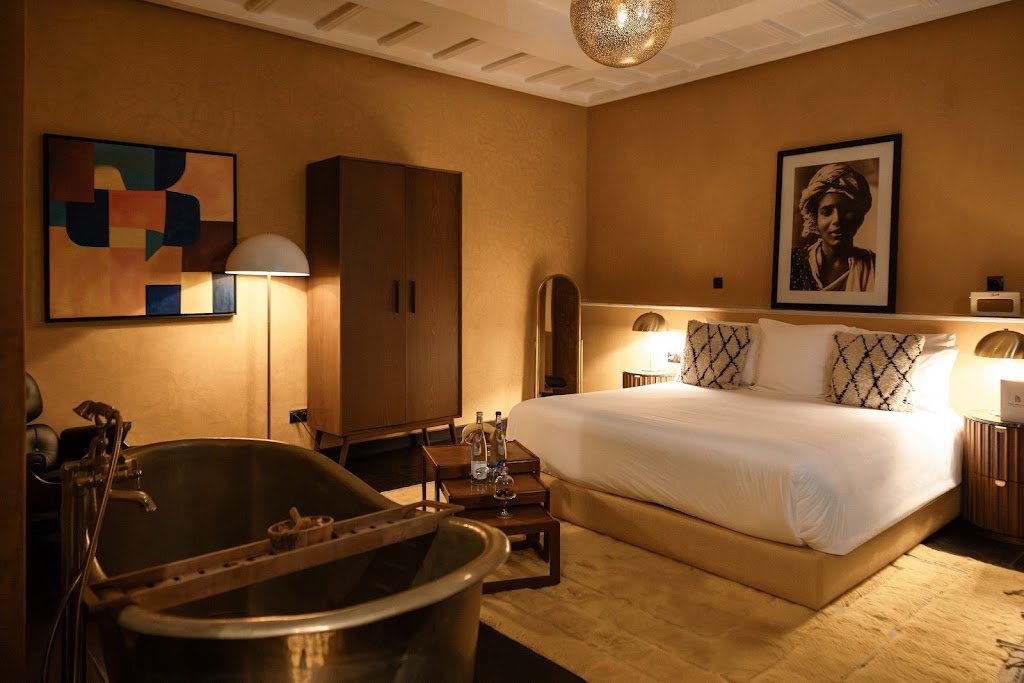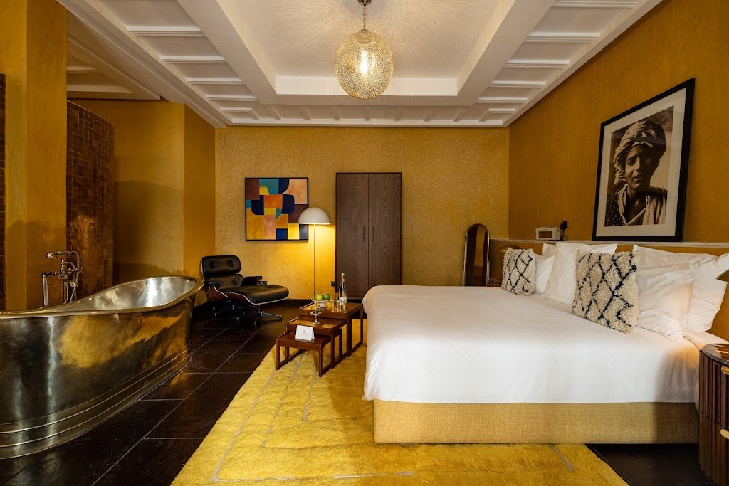 À deux pas des incontournables de Marrakech, The Mellah Hotel est un véritable havre de paix pour celles et ceux qui veulent vivre la médina sans renoncer au confort. Dès l’entrée, on retrouve une ambiance chaleureuse, une décoration pensée avec goût jusque dans les chambres, et un esprit intime qui invite à ralentir.
